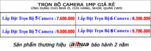 Trọn gói 7 mắt HDCVI – 720P Giá 9.000.000đ bao gồm: